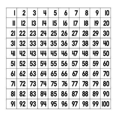 Wipe-Off Chart: Hundreds; 22 X 28; no. T-1090